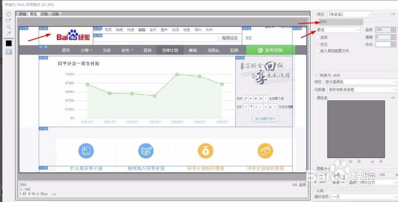 6、比如,其中的百度经验图标需要高像素,我们就选择该切片,在右侧的属性中修改。