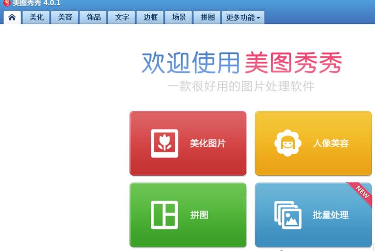 1、打开美图秀秀这款软件,进入美图秀秀的操作界面,如图所示: