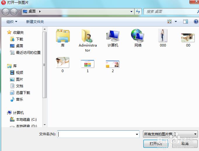 3、点击打开选项后,弹出打开一张图片对话框,如图所示: