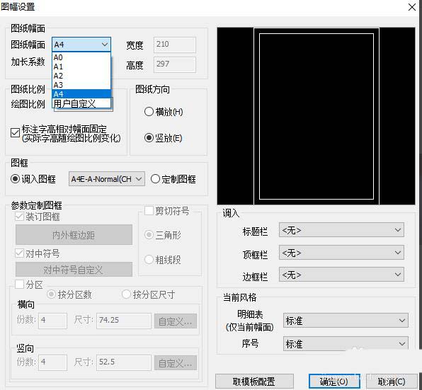 4、其中有各个图幅,有A1,A2,A3,A4,选择你所需要的。