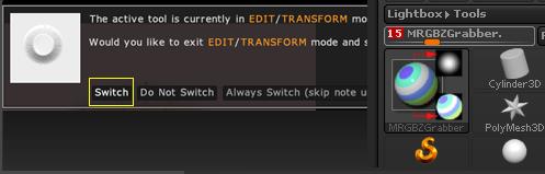 3、绘制好形状之后,在Tool面板位置,将Item Info值调整到15在弹出的快捷菜单中单击“Switch”按钮,出现MRGBZGrabber图标效果如图所示。