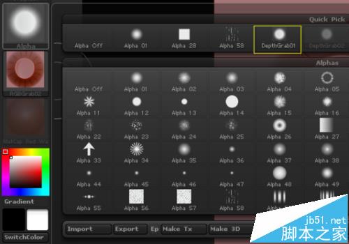 7、在Alpha菜单下还可以调整自定义笔刷参数。