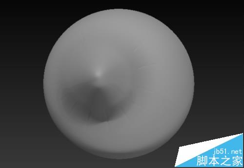 6、在视图区域绘制球体并转换为可编辑多边形模式,选择刚刚制作的笔刷,在模型上单击并拖拽。