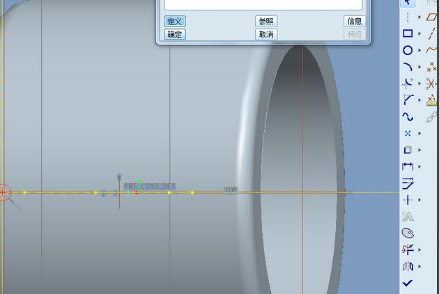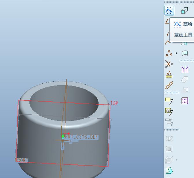 1、打开Pro/E软件,新建零件——进入草绘界面,具体的步骤,这里不详细说了,选取草绘平面,和草绘视图方向。