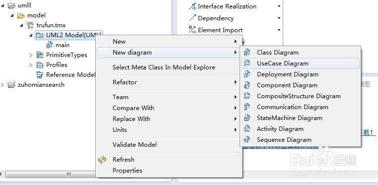 7、在UML2 MODEL那里点击右键--NEW diagram--usecase diagram