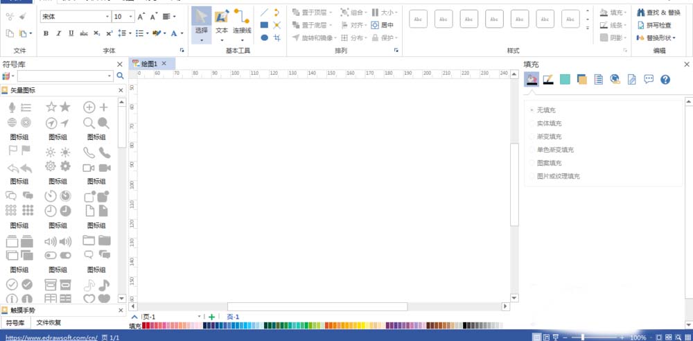3、生成空白的画布,左侧有矢量图标和触摸手势,如下图所示: