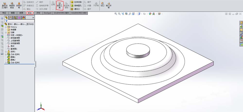 2、绘制自己的“成型工具”(相当于钣金加工过程中的模具),具体的绘制方法此处不作详细说明(主要就是利用“特征”工具)。