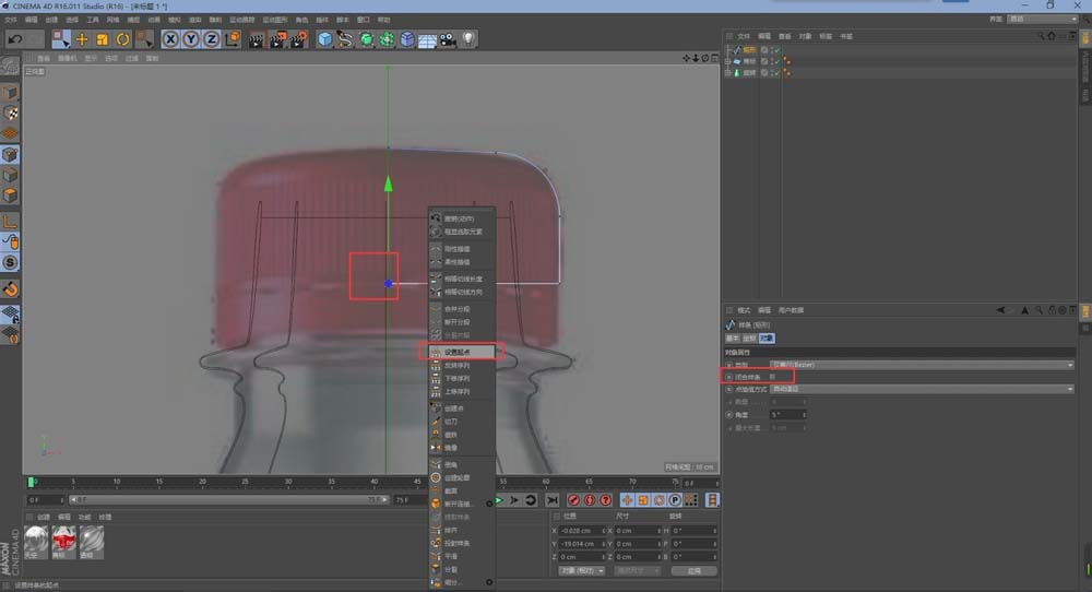 7、看瓶盖的边缘是有圆滑过渡的,所以我们可以选择矩形样条的右上角的点,右击添加倒角,倒角的大小可以根据参考图来进行设置!