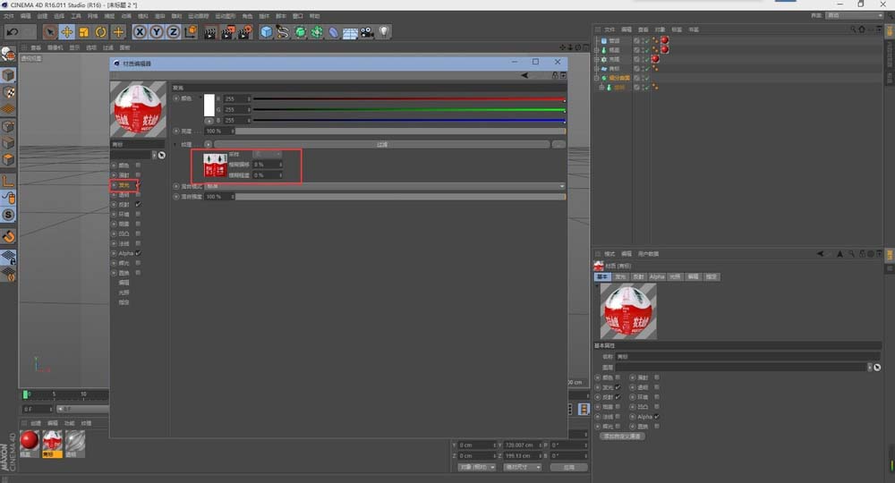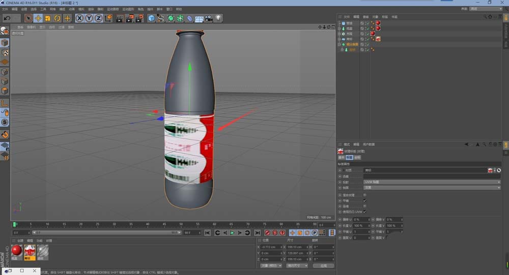 14、商标的材质就是给贴图即可,贴图的投射方式改成柱状,改成单面,然后再材质上右击,使其适应对象即可很好的贴合到模型上了。