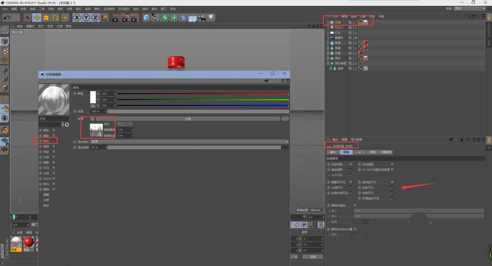 18、然后,在为其添加一个天空,添加hdr贴图,,再加一个合成标签,让其对摄像机不见。