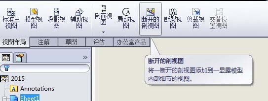 4、在工程图上菜单栏中找到相应的断开剖视图的命令,点击断开剖视图命令,