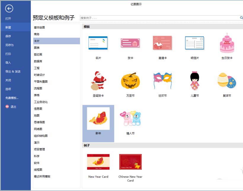 亿图图示是一款全类型图形图表软件,不仅可以绘制流程图,组织结构图,思维导图,还可绘制各种贺卡。