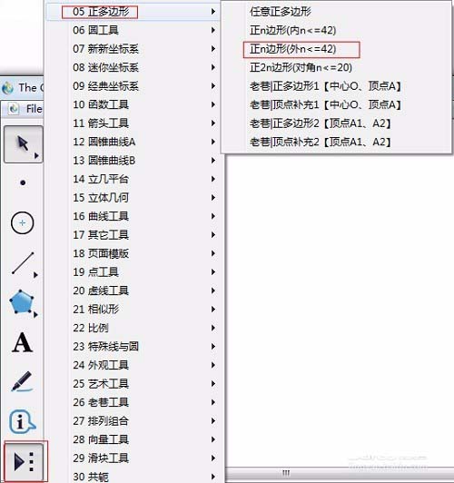 4、控顶点正多边形。如果你要固定正多边形的顶点画出正多边形,首先你要单击左边侧边栏中的“自定义工具”,选择“正多边形”——正n变形(外≤42);