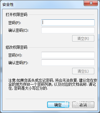 5、要去除密码怎么办?以上述同样的方式打开密码设置窗口,将设置的密码清空,单击确定即可。这样在保存关闭,再打开时密码即已去除。