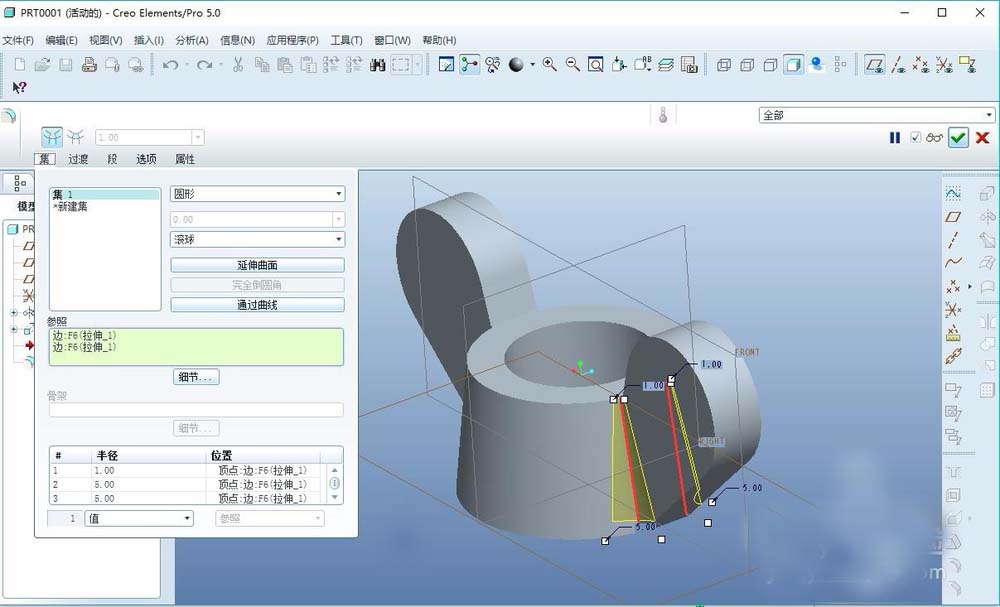 4、倒圆角处理,这次我们将运用到的是变半径倒圆角,因为两只耳朵高度圆角是不一样的,如下图所示。对另外一只的耳朵做同样的处理。