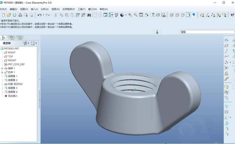 该经验为大家分享以一篇proe5.0实例教程案例。该教程proe与creo都能使用。这次的教程我们来绘制一个蝶形螺母。