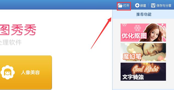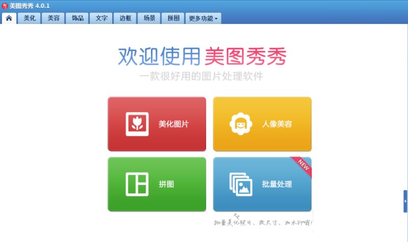 1、打开美图秀秀这款软件,进入美图秀秀的操作界面,如图所示: