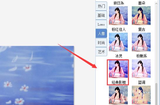 6、点击人像选项,在其内找到经典影楼选项,如图所示: