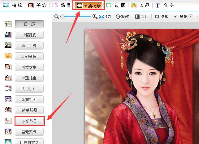 5、在该界面内找到高清场景选项,并在其内找到欢乐节日选项,如图所示: