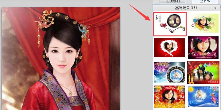6、点击欢乐节日选项,在右侧的已下载里找到我们需要的场景预设,如图所示: