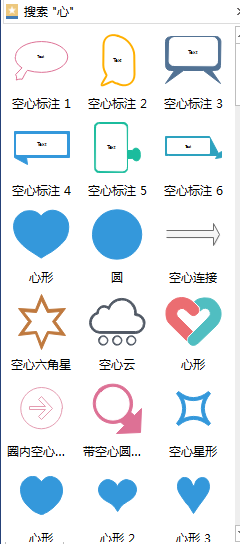 2、点击搜素键开始搜索。所有名字包含心字的形状都将展示在库下方。