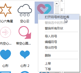 1、在库上方的搜素框输入形状名称,比如“心”。