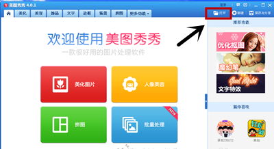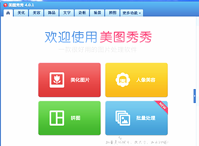 1、打开电脑,打开美图秀秀软件,进入美图秀秀图片处理软件。