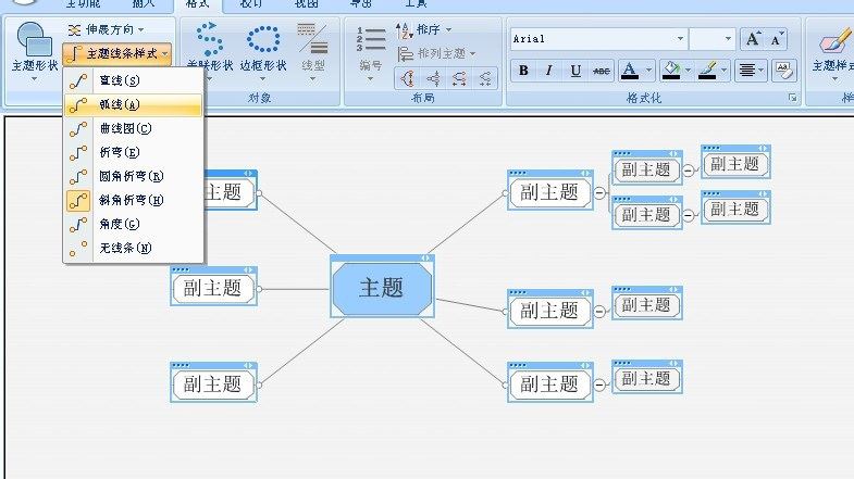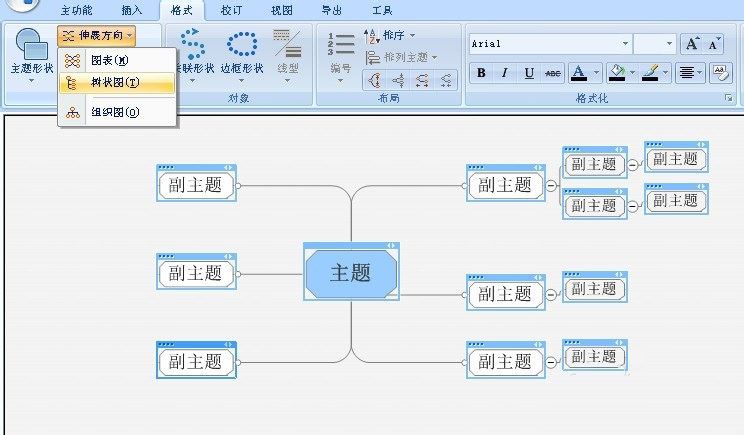 4、改变伸展方向,树形、组织机构型,不同版本提供的形状不同。