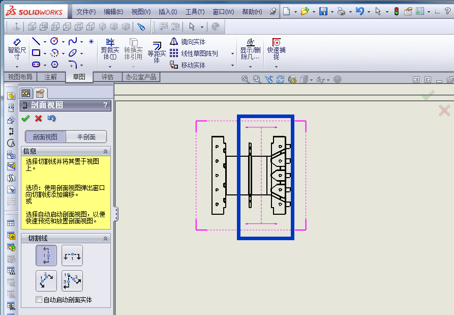 SolidWorks 2013制作工程图的时候,剖面视图是对个别地方看不清楚,或者表示不出尺寸的时候,利用剖视图来解决标识尺寸。今天来给大家介绍下剖面视图如何绘制。