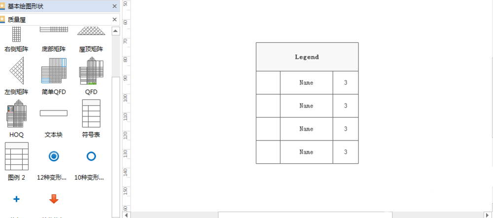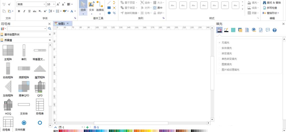 2、创建空白的画布,可以查看左侧基本绘画形状和质量屋,如下图所示: