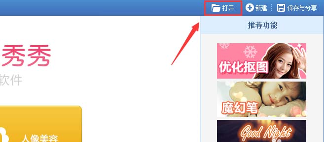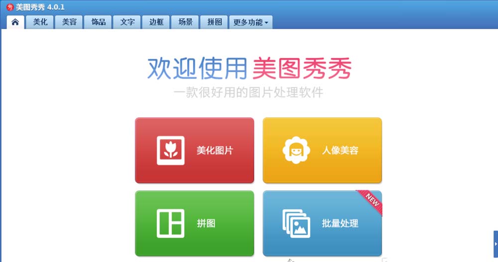 1、打开美图秀秀这款软件,进入美图秀秀的操作界面,如图所示: