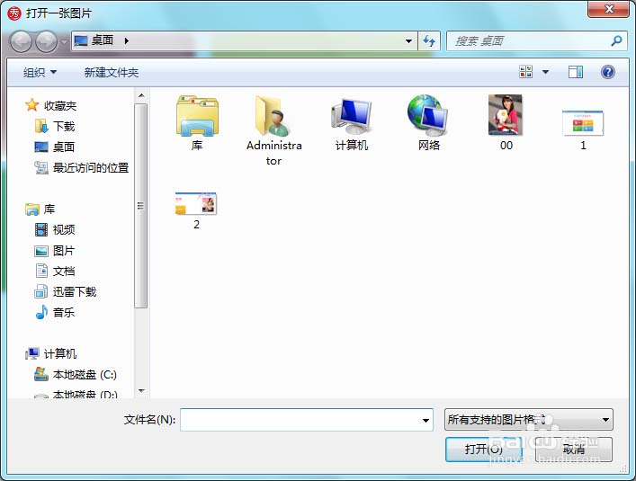 3、点击打开选项,弹出打开一张图片对话框,如图所示: