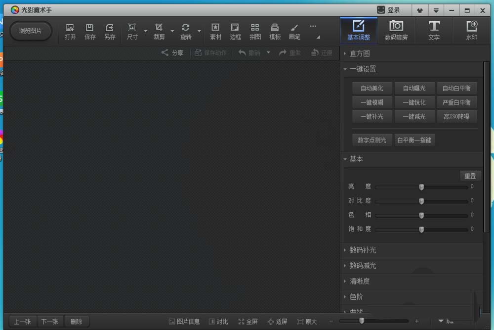 1、打开光影魔术手这款软件,进入光影魔术手的操作界面,如图所示: