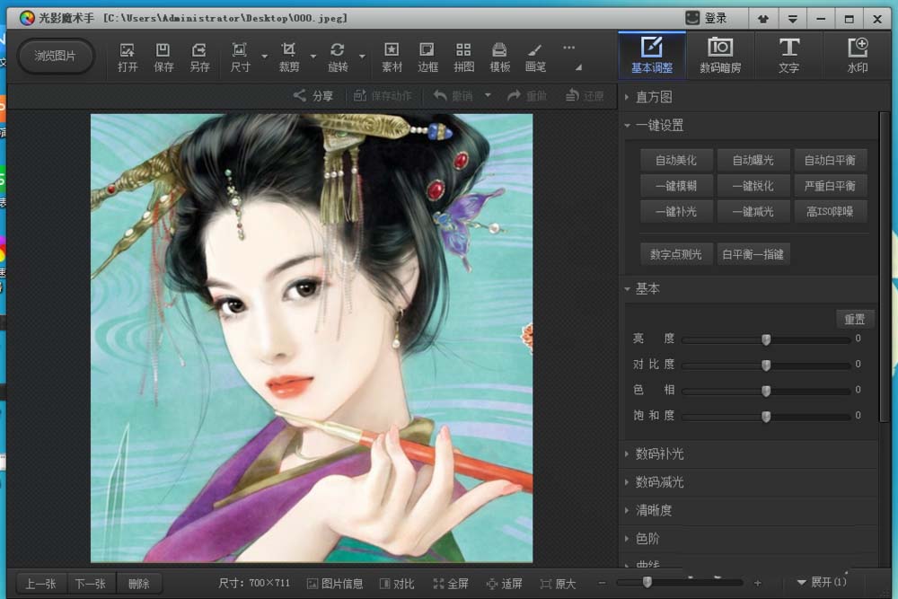 光影魔术手是一款免费的图片编辑与处理软件,该软件操作简单易行容易上手,其内置的图片特效能够让我们非常轻松的制作出令人震撼的效果图片,下面我们就来使用该软件制作一张阿宝色调效果图片,其图片效果如图所示:
