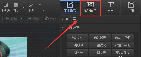 5、在该界面内找到数码暗房选项,如图所示: