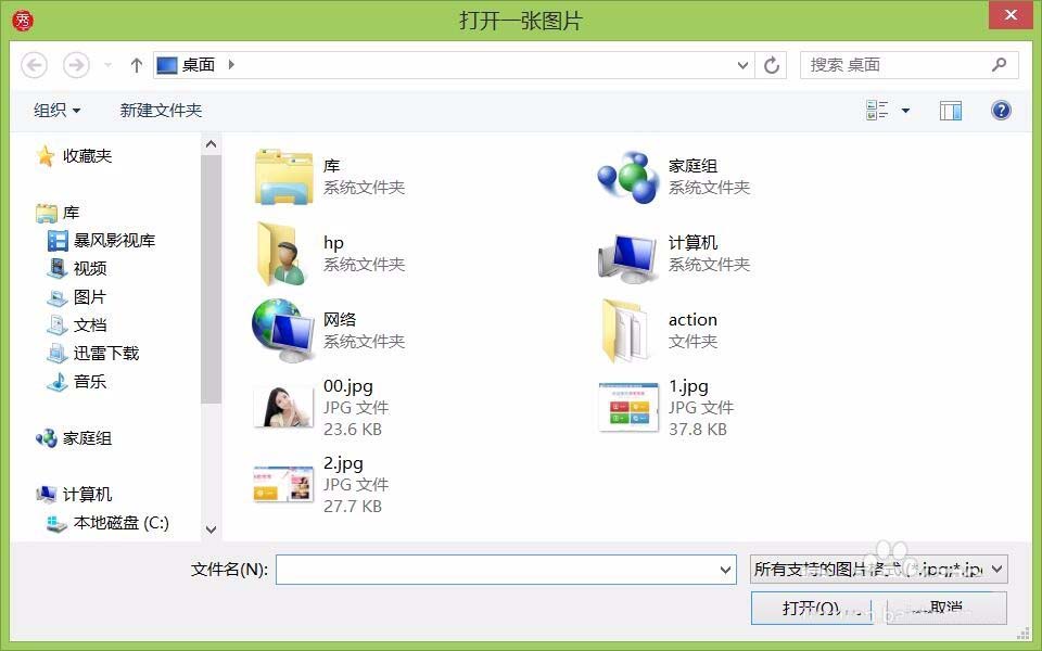 3、点击打开选项,弹出打开一张图片对话框,如图所示: