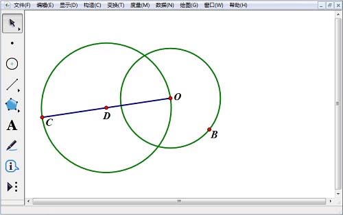 3、作圆。选中点D和点O,菜单“构造”中选择“以圆心和圆周上的点绘圆”。