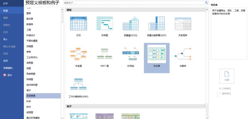 1、第一步,双击打开Edraw Max设计软件,依此操作“新建--->项目管理--->状态表”,如下图所示: