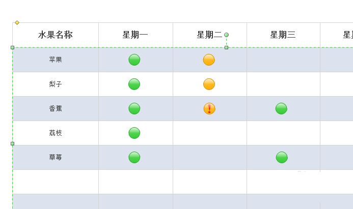 4、第四步,修改“状态表”显示的内容,这里默认显示星期和水果关系,如下图所示: