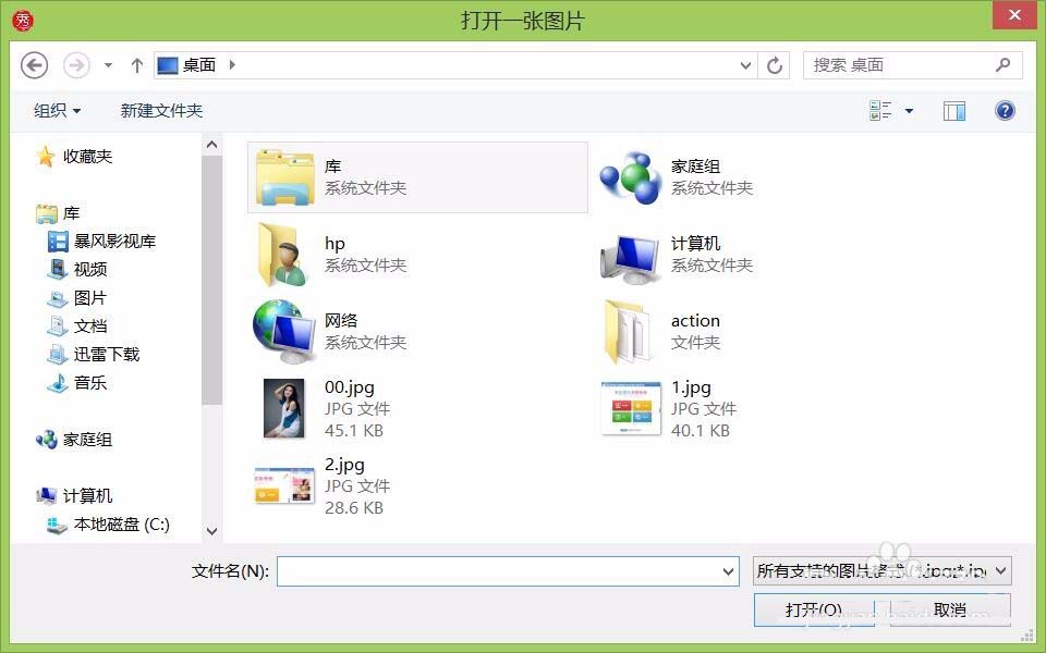 3、点击打开选项,弹出打开一张那个图片对话框,如图所示: