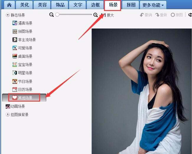 5、在该界面内找到场景选项,点击场景在其内找到其他场景选项,如图所示: