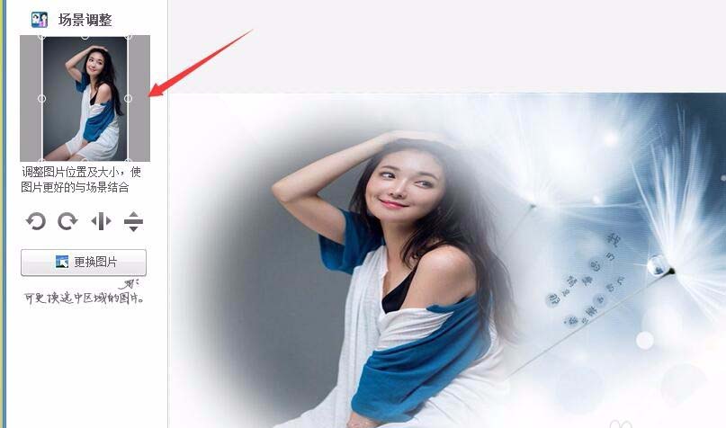 7、点击我们选择的场景预设,进入期编辑操作界面,在该界面内的调节窗口里调节图片的显示范围,如图所示: