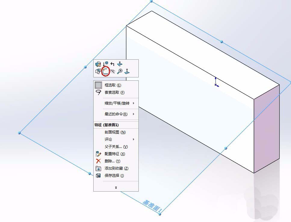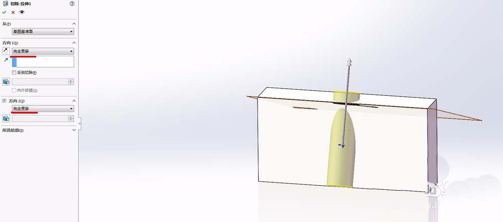 3、在建立的基准面上单机绘制草图,草图画好之后进行特征操作!如图选择的是拉伸切除!