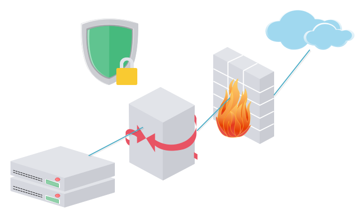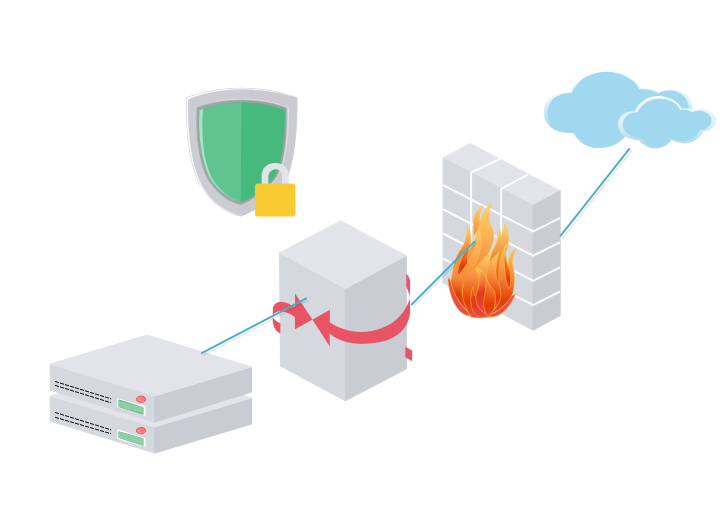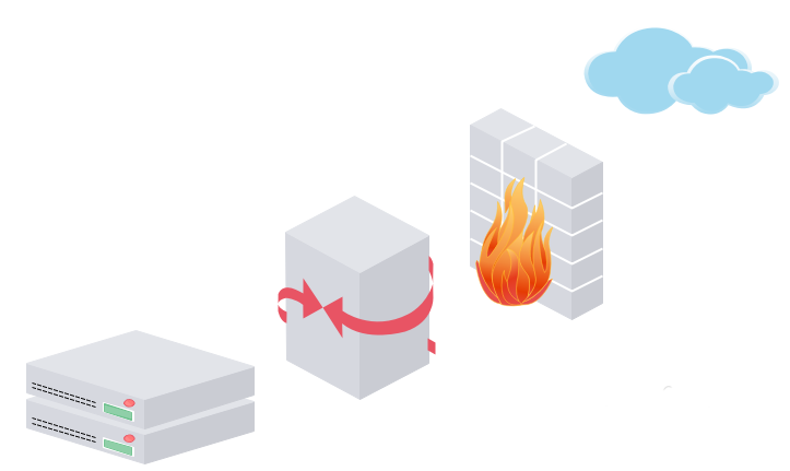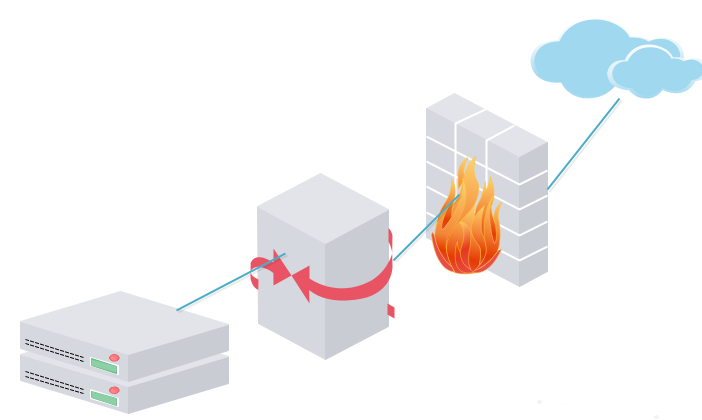 4、再次拖一个网关、防火墙和Internet图到画布上,如下图所示: