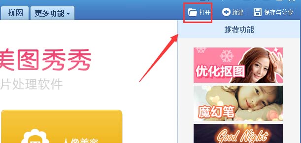 1、打开美图秀秀这款软件,进入美图秀秀的操作界面,如图所示: