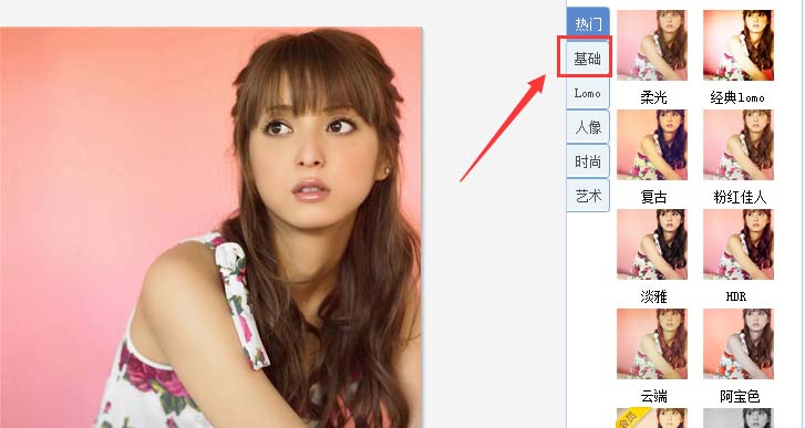 6、点击基础选项,在其内找到智能绘色选项,如图所示: