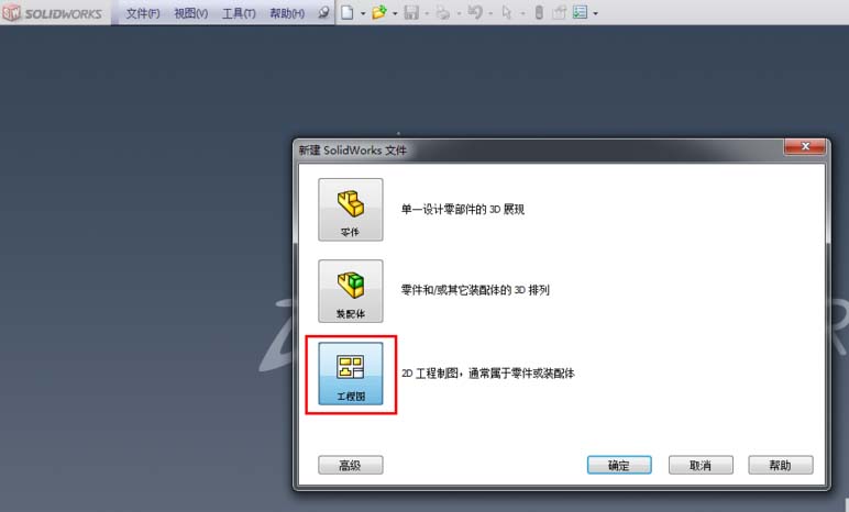 1、打开软件,新建一个工程图空白模板,插入零件做摆放三视图。