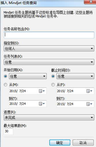 3、指定查询的过滤条件(在主题添加到导图之后,可以根据需要修改过滤条件);