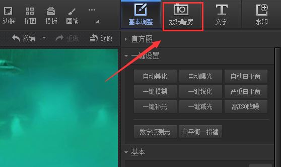 6、点击数码暗房选项,在其内找到去色选项,如图所示: