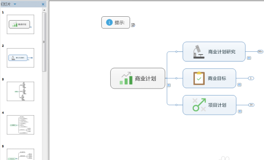 5、MindManager中,幻灯片形式可以让你和他人对主题进行仔细查阅,以主题为中心,将细节放大化。同时你还可以将创建的幻灯片,打印出来或者导出幻灯片到Microsoft PowerPoint。